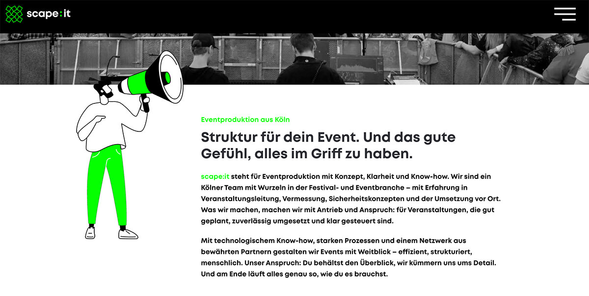 Eine Website mit klarer Sprache, präzisem Wording und hoher inhaltlicher Tiefe – die scape:it authentisch darstellt und den Anspruch des Unternehmens transportiert.